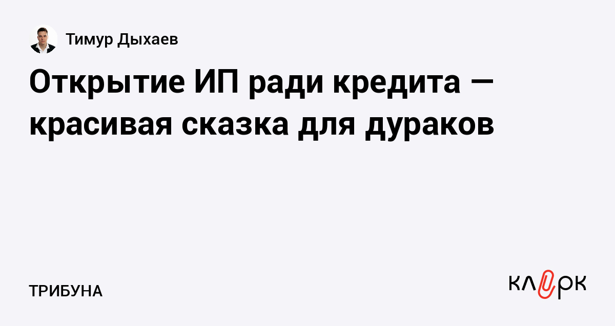 Дополню: открытие ИП при работе с частным инвестором под залог недвижимости — это нормальная практика. В посте речь идёт о «сказках» с фиктивными бизнес-планами.