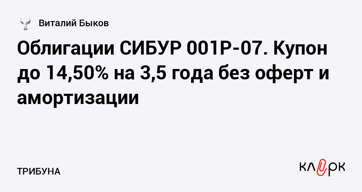 Облигации СИБУР 001Р-07. Купон до 14,50% на 3,5 года без оферт и амортизации