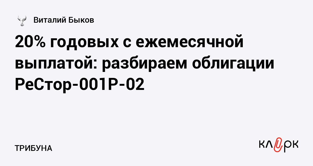20% годовых с ежемесячной выплатой: разбираем облигации РеСтор-001Р-02