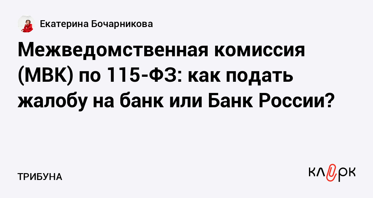 Межведомственная комиссия (МВК) по 115-ФЗ: как подать жалобу на банк или Банк России?