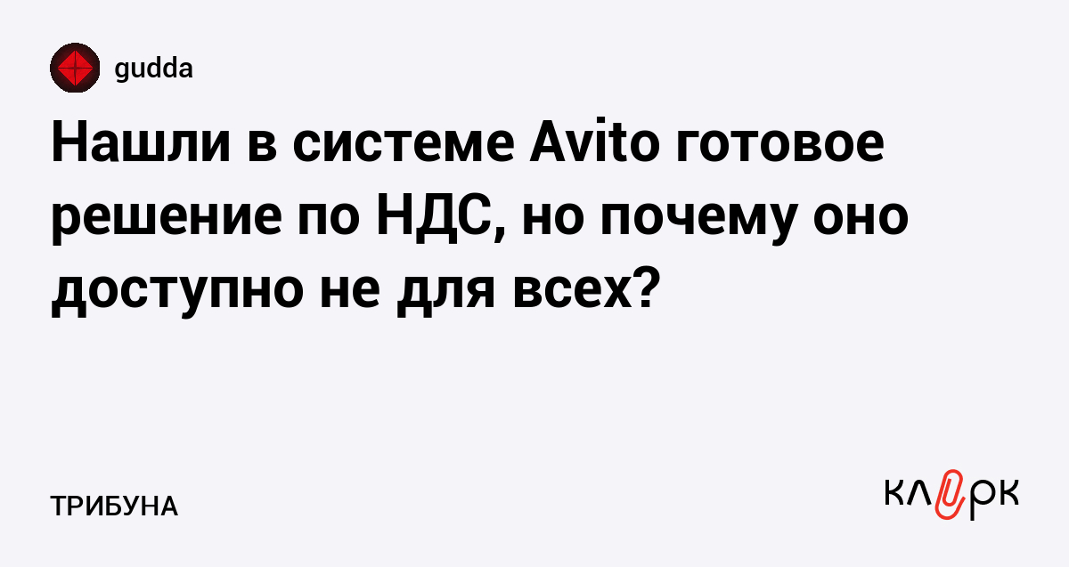 Нашли в системе Avito готовое решение по НДС, но почему оно доступно не для всех?