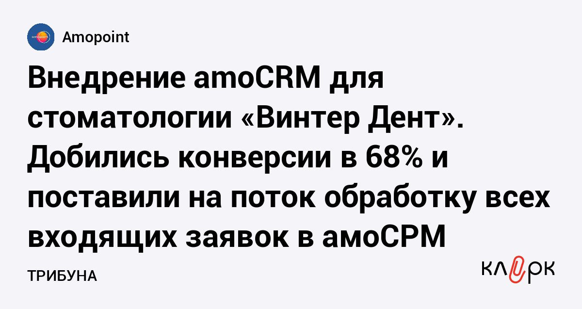 В этой статье расскажем про процесс внедрения amoCRM для семейной стоматологии «Винтер Дент».