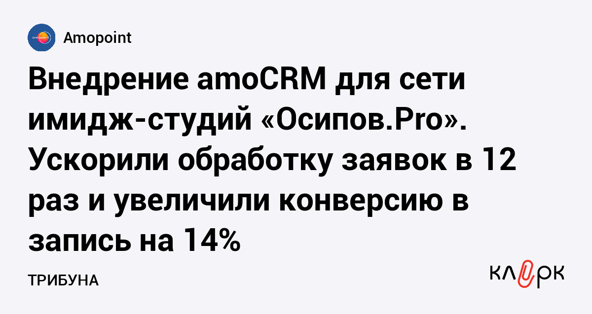 Внедрение amoCRM для сети имидж-студий «Осипов.Pro». Ускорили обработку заявок в 12 раз и увеличили конверсию в запись на 14%