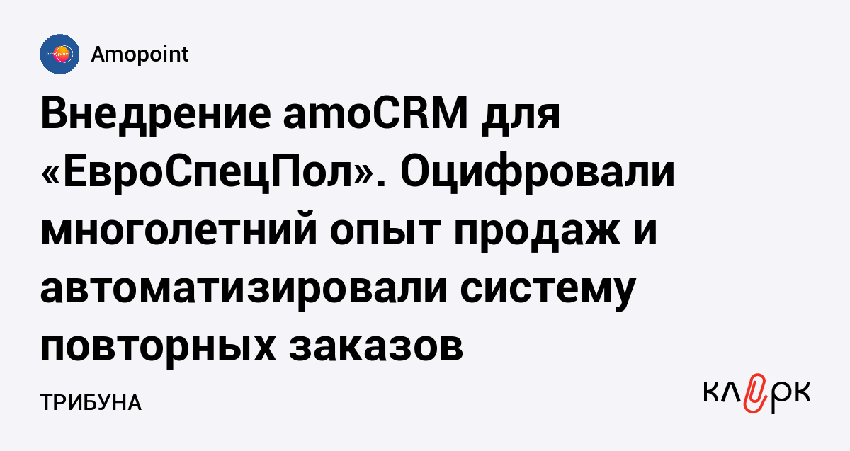 Внедрение amoCRM для «ЕвроСпецПол». Оцифровали многолетний опыт продаж и автоматизировали систему повторных заказов