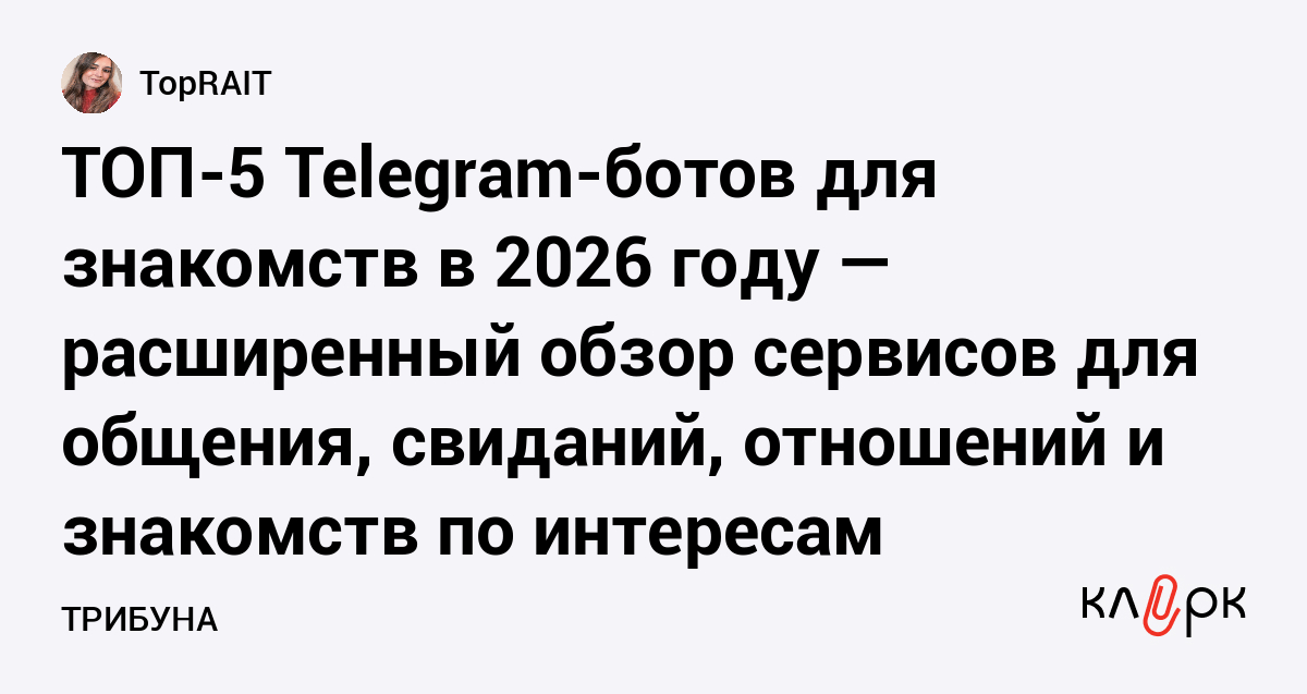ТОП-5 Telegram-ботов для знакомств в 2026 году — расширенный обзор сервисов для общения, свиданий, отношений и знакомств по интересам