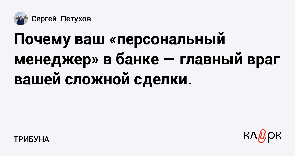 Почему ваш «персональный менеджер» в банке — главный враг вашей сложной сделки.