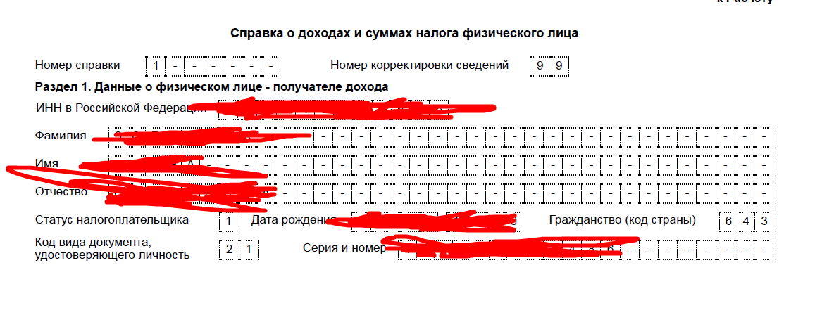 3. В справке 2-ндфл ставим номер корректировки 99 и никаких сумм там не должно быть?