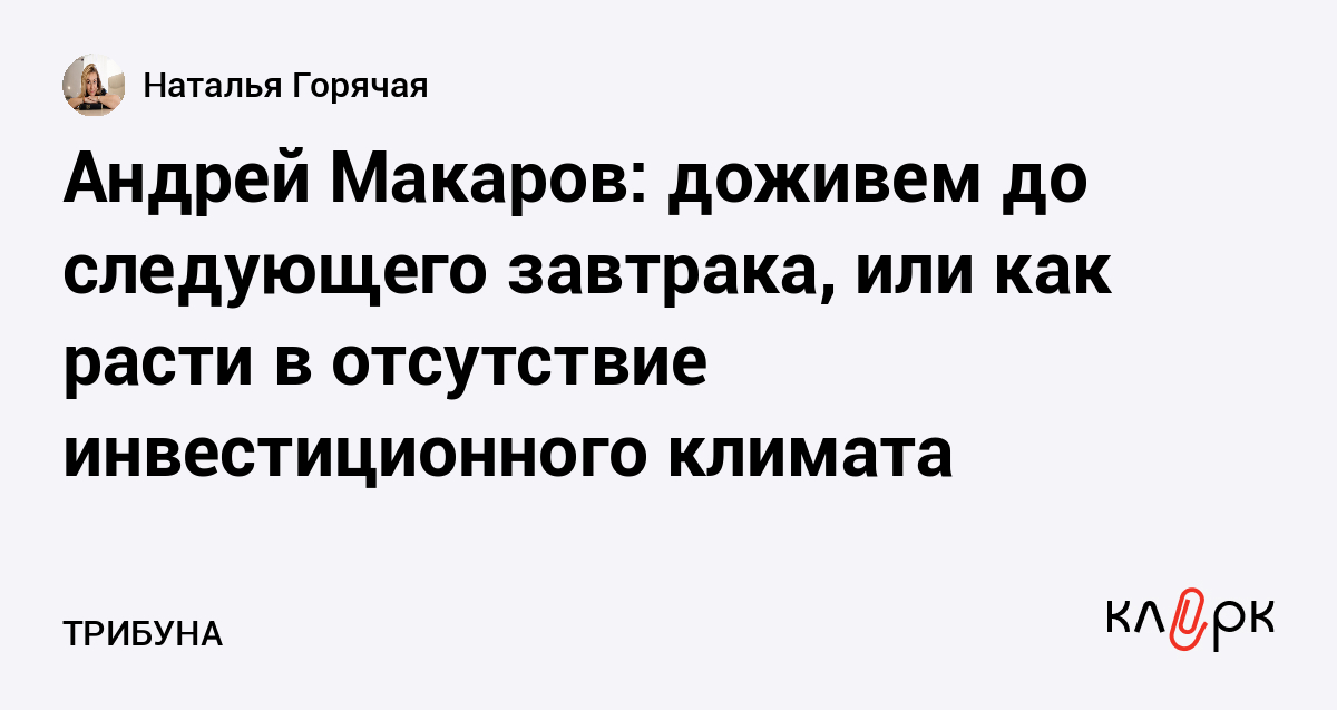 Андрей Макаров: доживем до следующего завтрака, или как расти в отсутствие инвестиционного климата