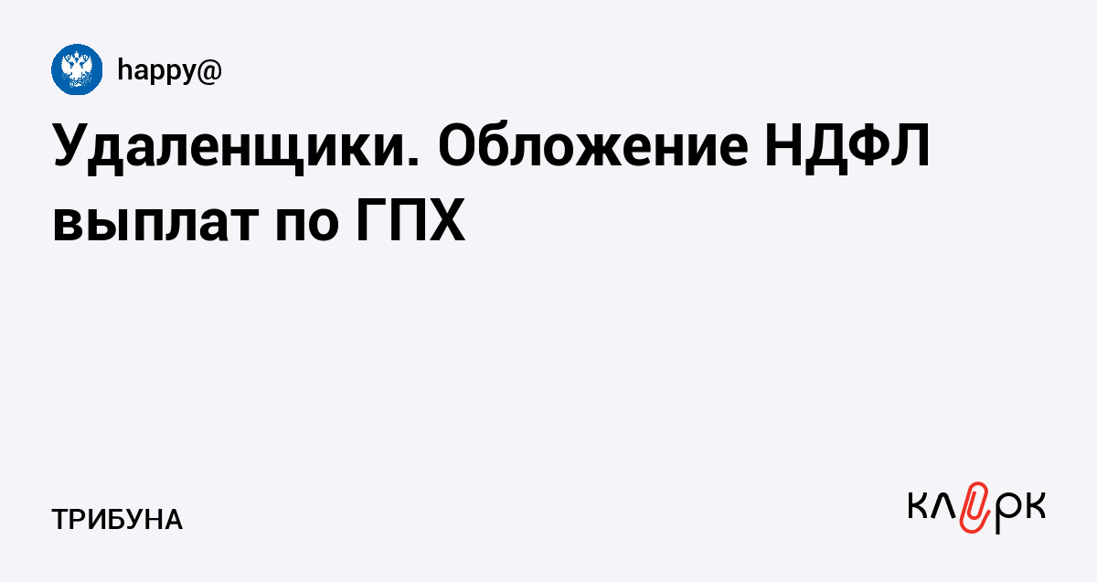 Удаленщики. Обложение НДФЛ выплат по ГПХ