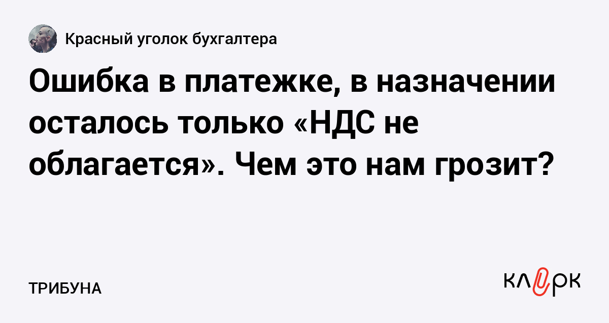 Ошибка в платежке, в назначении осталось только «НДС не облагается». Чем это нам грозит?