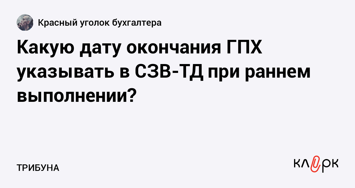 Какую дату окончания ГПХ указывать в СЗВ-ТД при раннем выполнении?