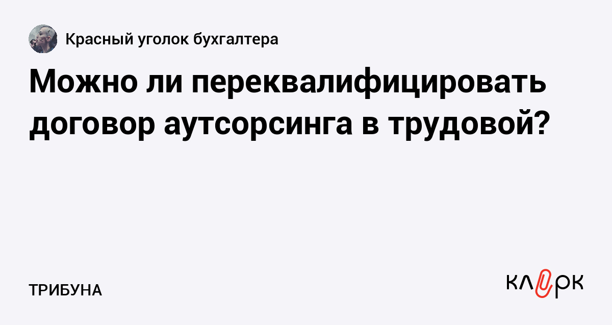 Доброго дня. Есть такой вопрос, может кто-то уже сталкивался, есть опыт. Можно ли договор аутсорсинга, заключённый с организацией, переквалифицировать в трудовой?