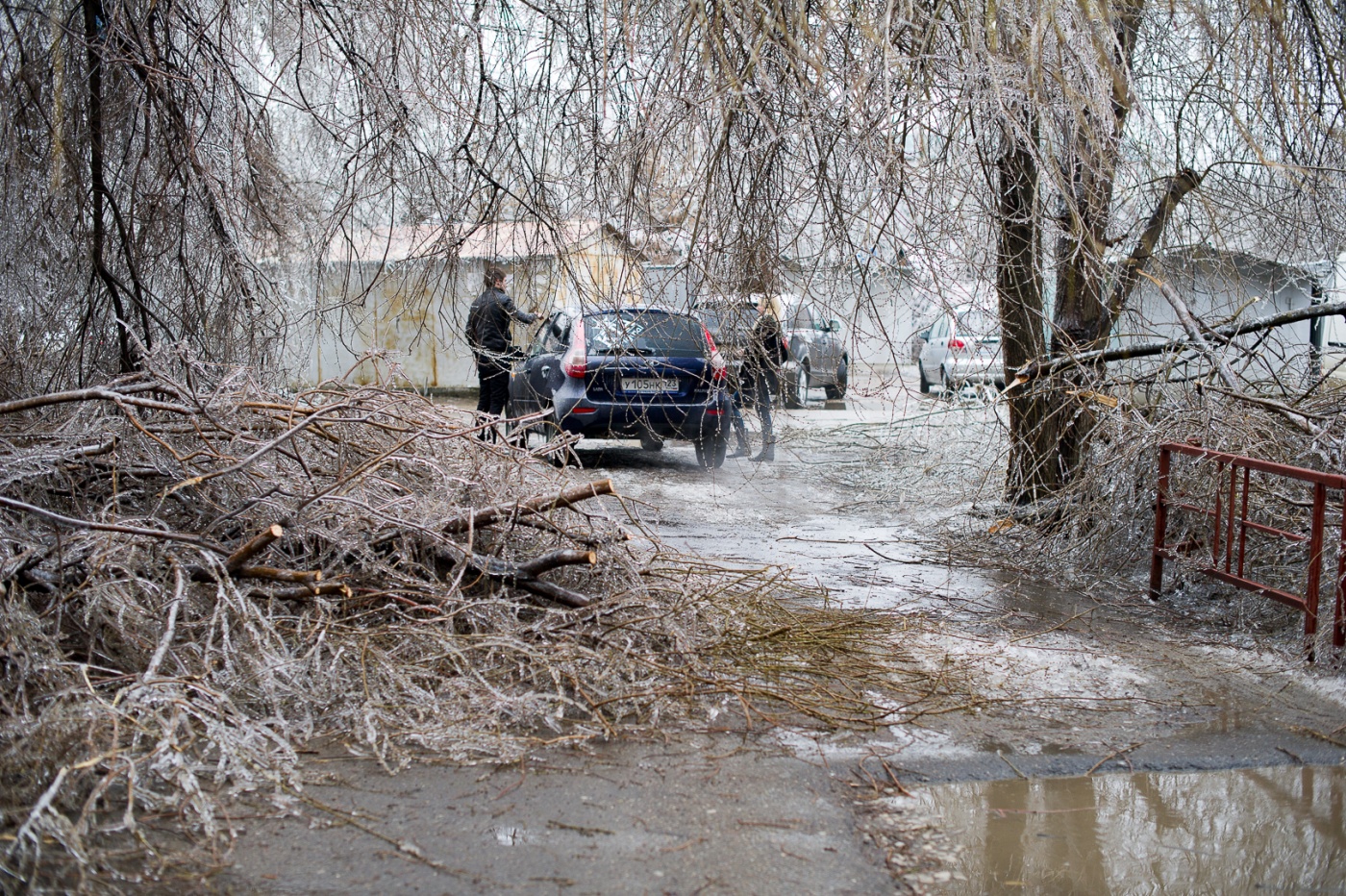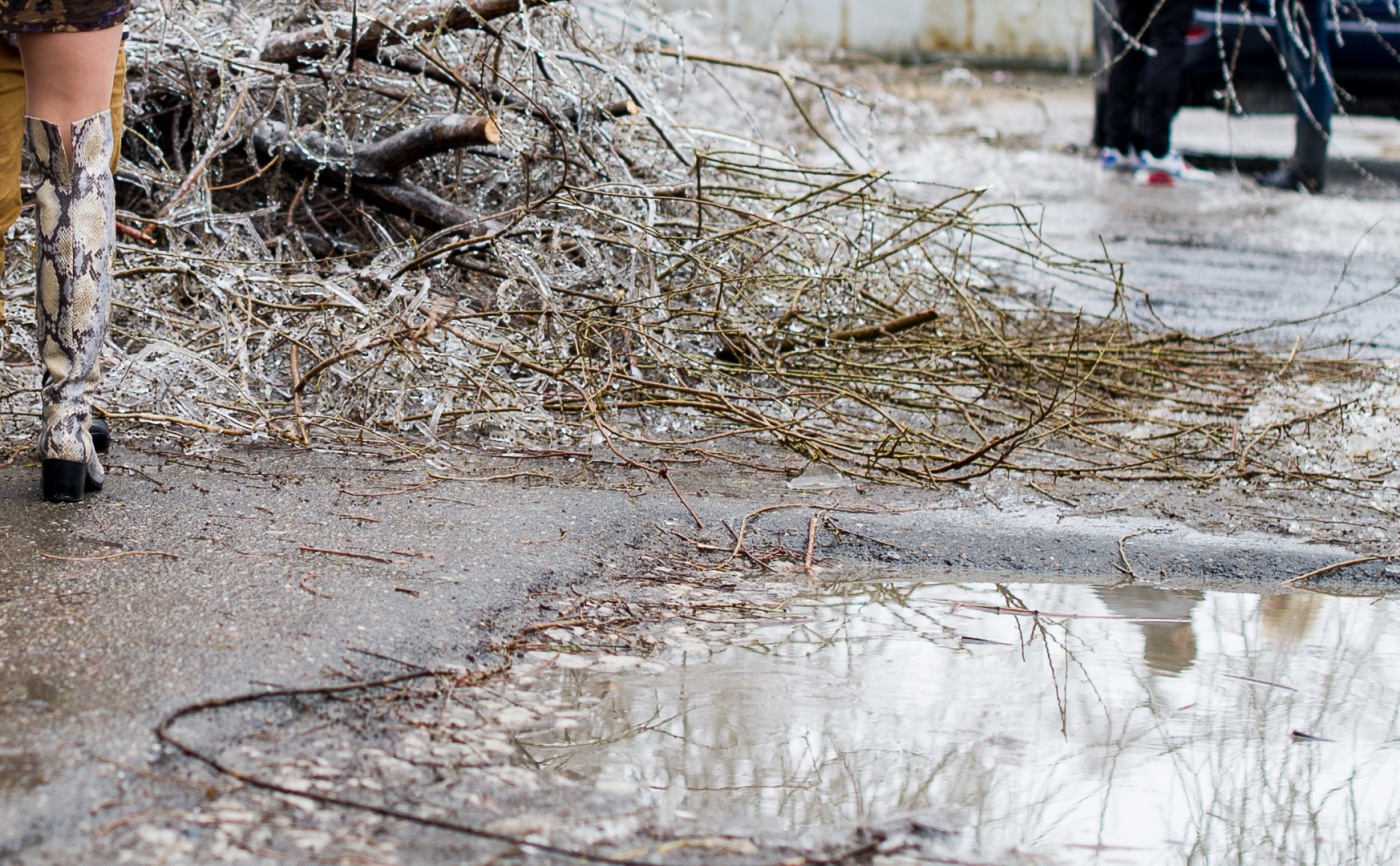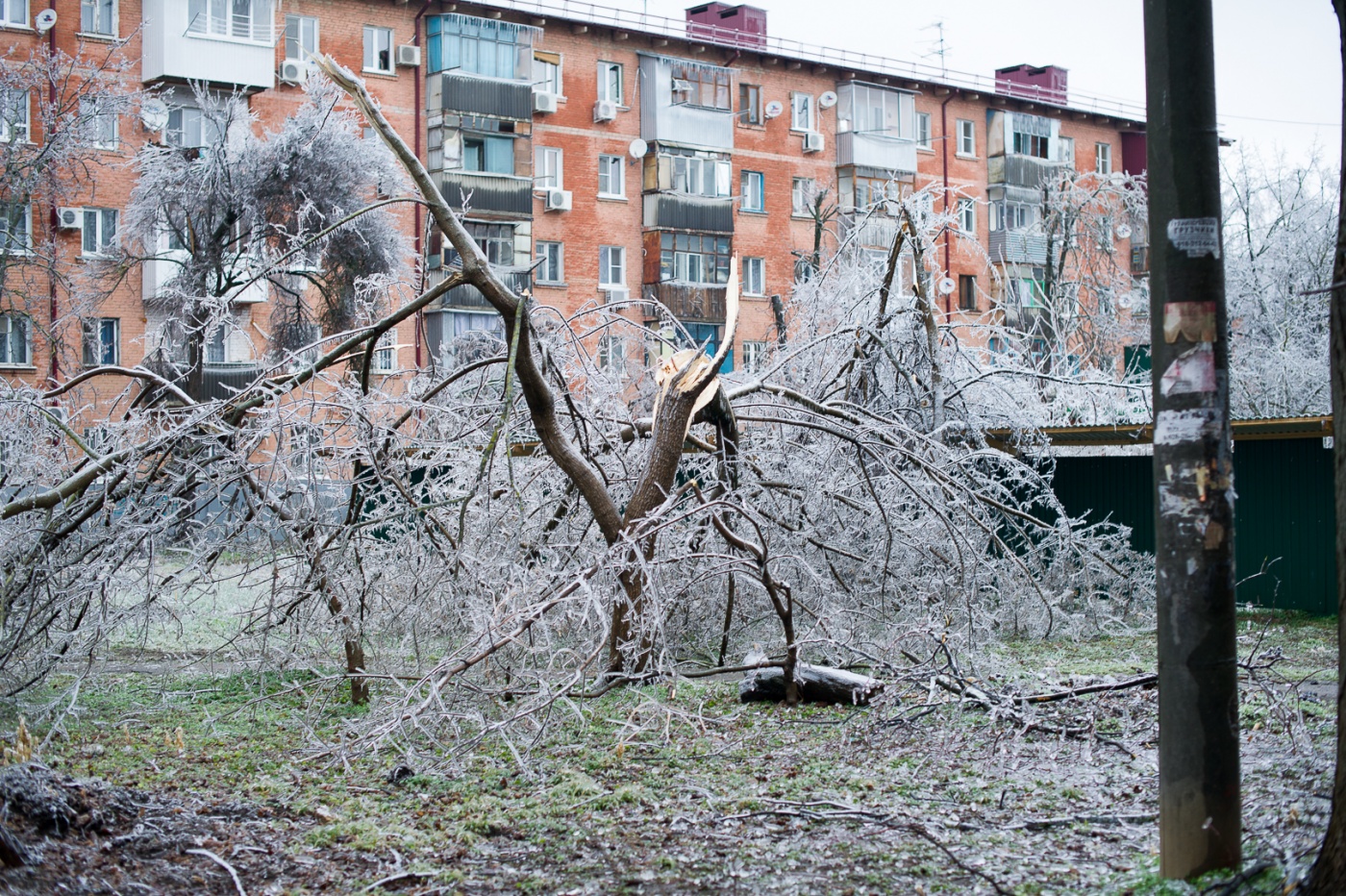 Общественный транспорт не ходит, электрические провода разбросаны по дорогам, деревья падают и убивают людей. Школы Краснодара завтра будут работать в свободном режиме. Везде лед.