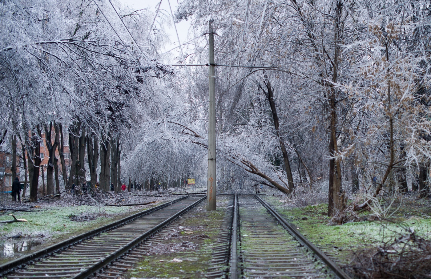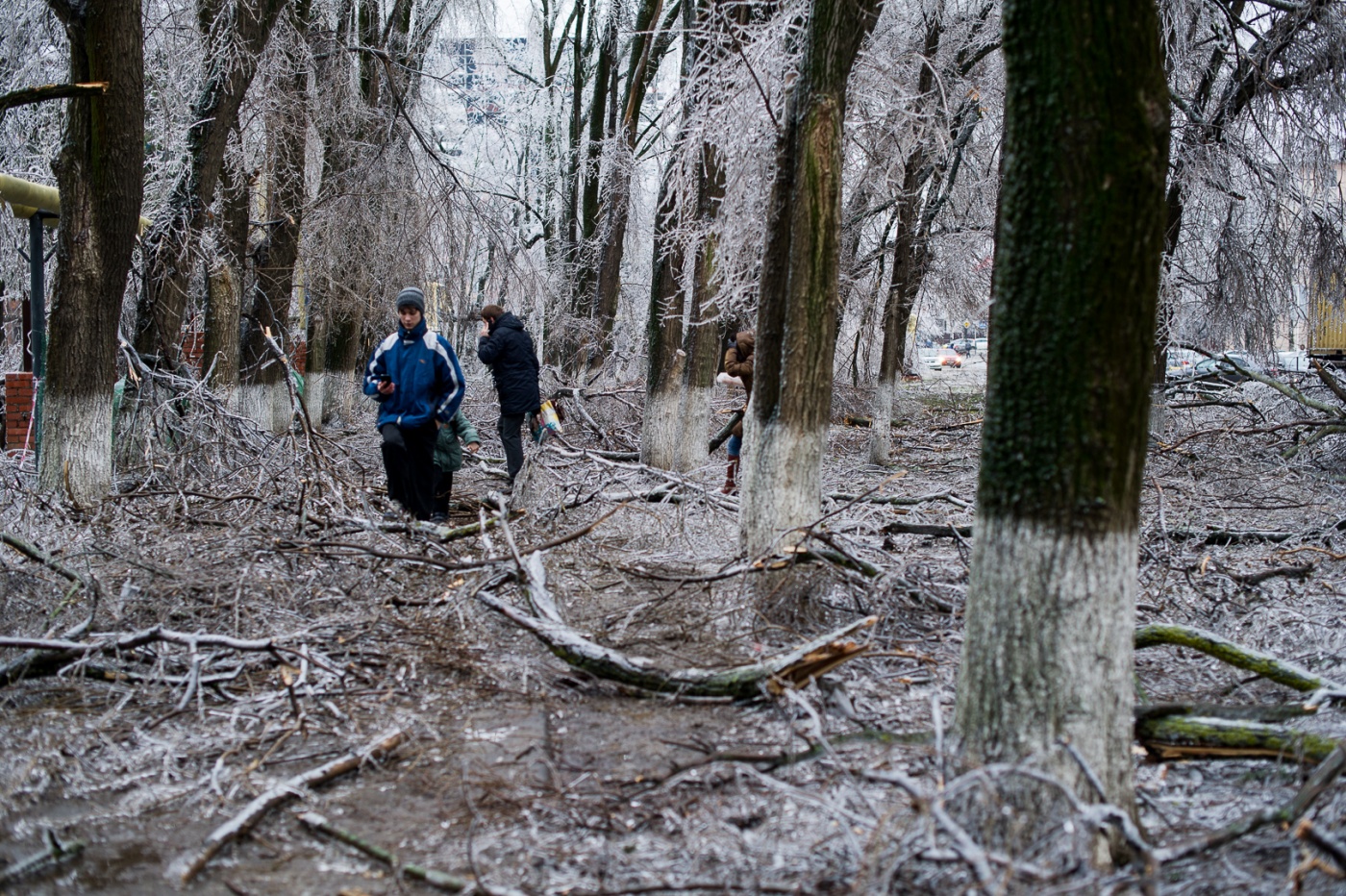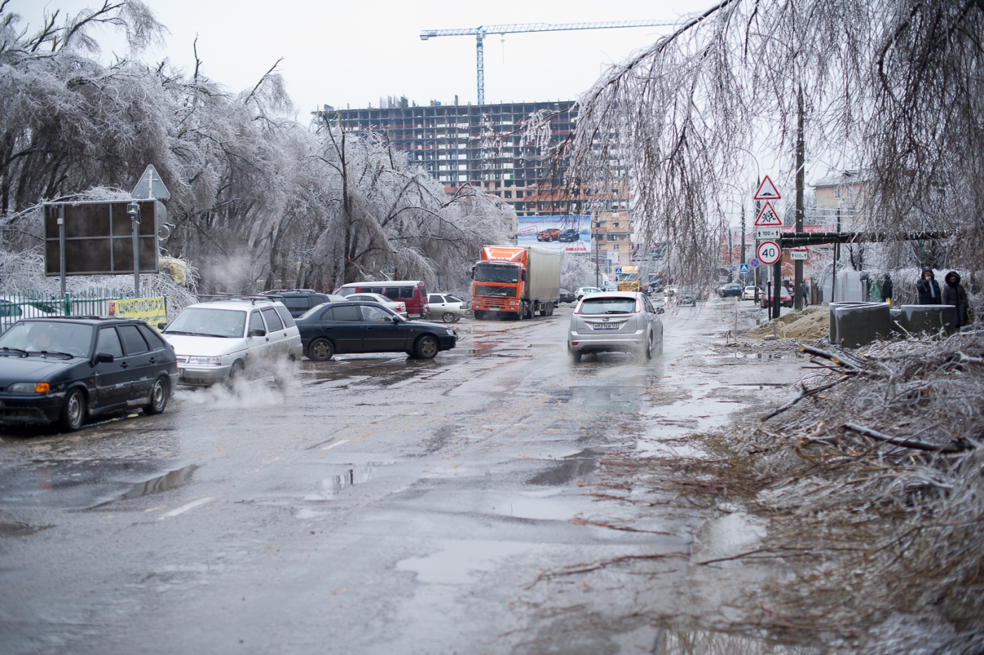 Общественный транспорт не ходит, электрические провода разбросаны по дорогам, деревья падают и убивают людей. Школы Краснодара завтра будут работать в свободном режиме. Везде лед.