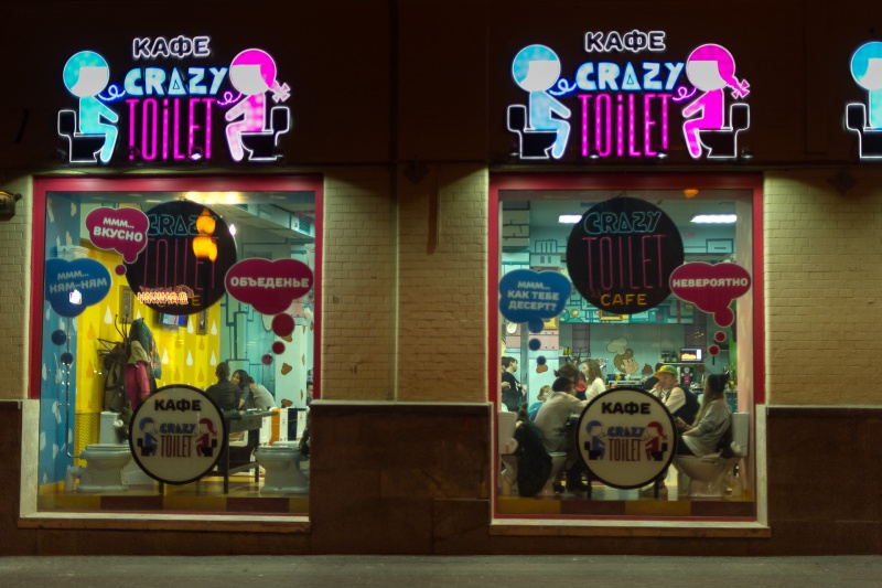 Новое кафе " Сумасшедший туалет" на Арбате. Я не стал заходить показалось неуютно и неудобно пить чай на унитазе )