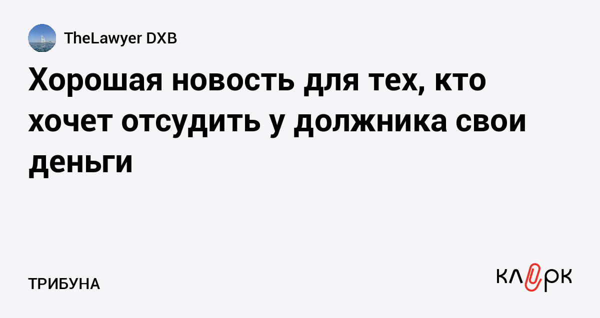 В РФ хотят внедрять положительный опыт Дубая? Идея хорошая. В РФ исполнение сильно хромает из-за плохой работы приставов и отсутствия рычагов при неплатежеспособности должника, а еще на должника иногда возлагают совершение определенных действий (безденежное обязательство), что не всегда зависит от финансовой состоятельности должника. Жаль что в посте не развернута рабочая схема.