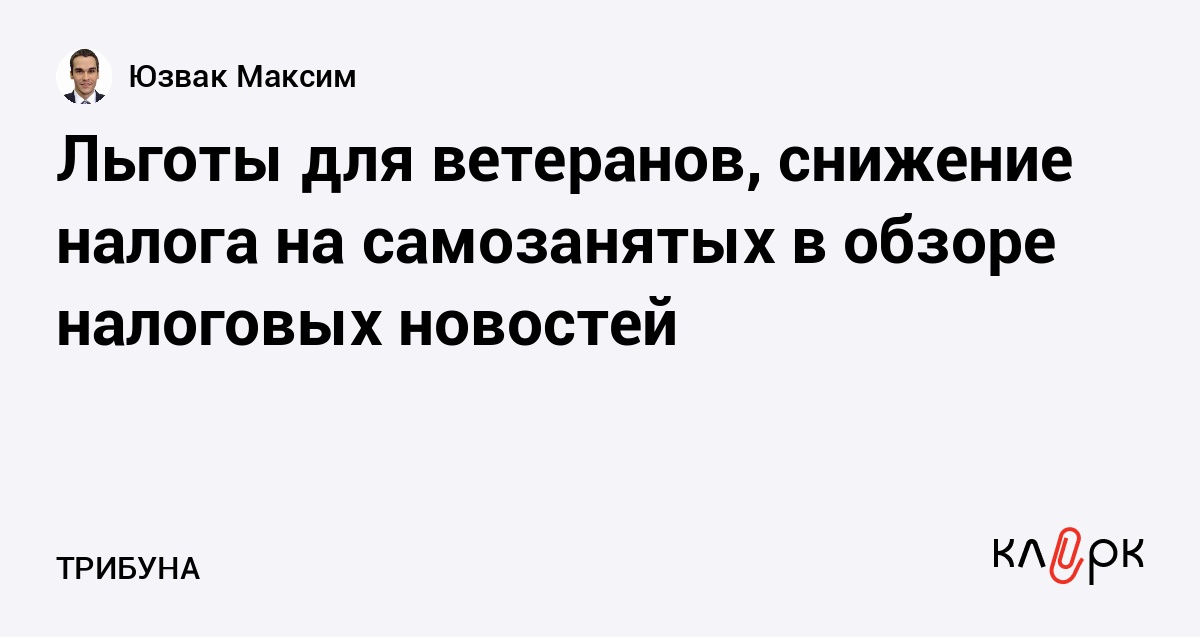 Льготы для ветеранов, снижение налога на самозанятых в обзоре налоговых новостей