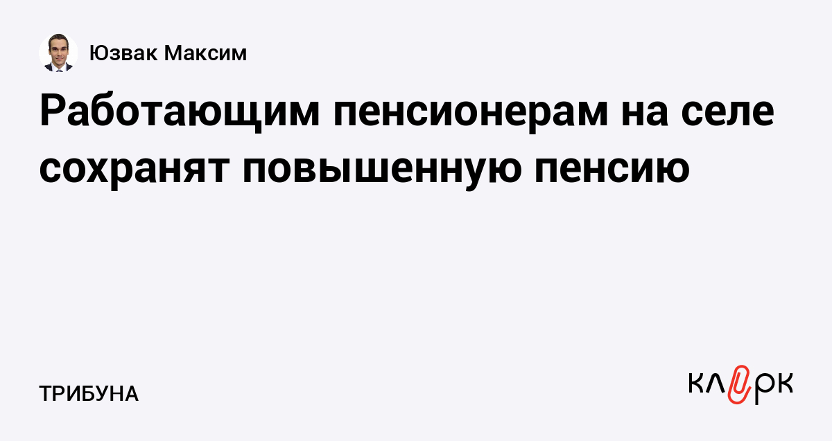 Работающим пенсионерам на селе сохранят повышенную пенсию