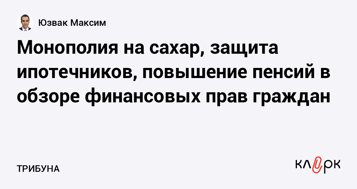Монополия на сахар, защита ипотечников, повышение пенсий в обзоре финансовых прав граждан