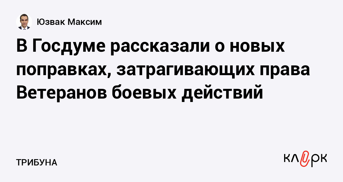 В Госдуме рассказали о новых поправках, затрагивающих права Ветеранов боевых действий