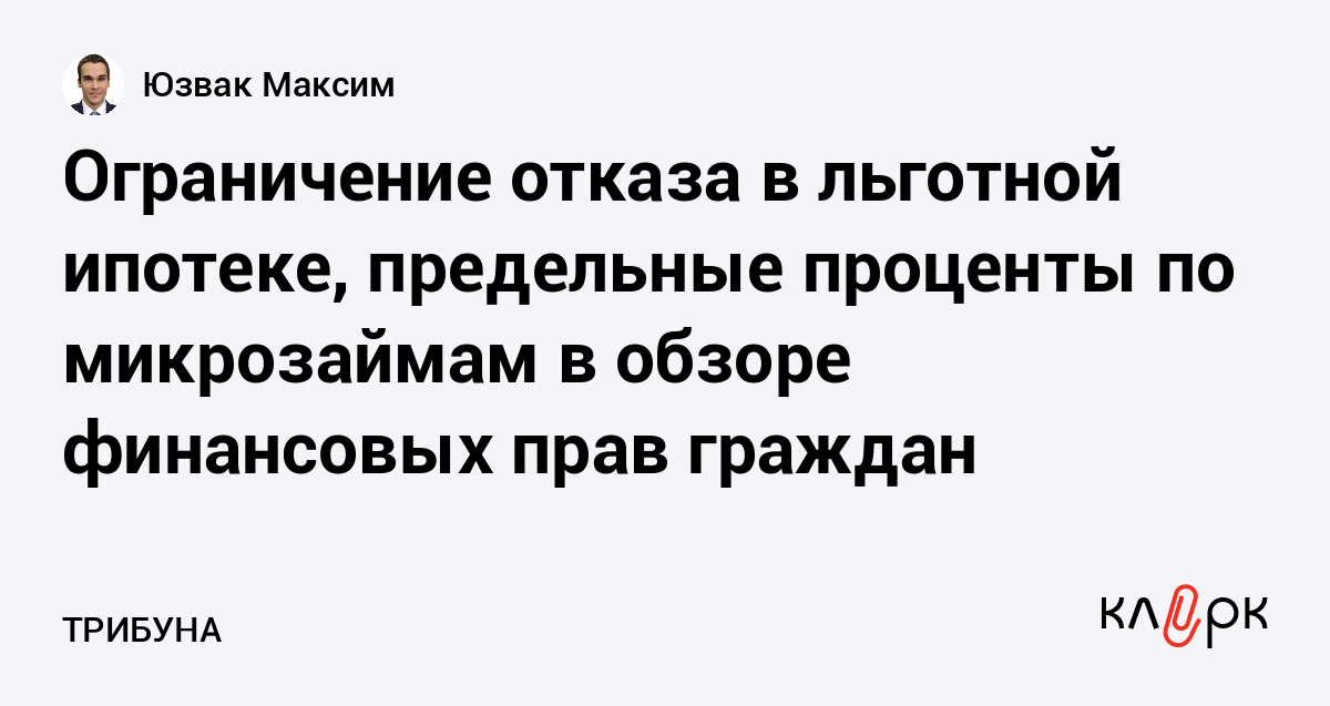 Ограничение отказа в льготной ипотеке, предельные проценты по микрозаймам в обзоре финансовых прав граждан