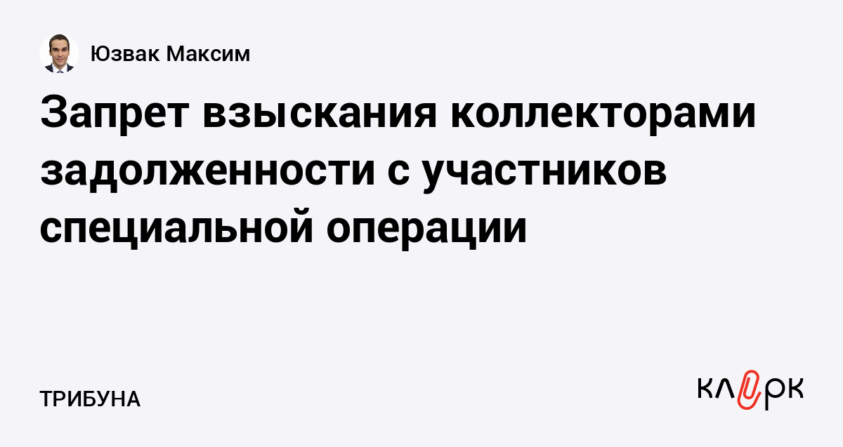 Запрет взыскания коллекторами задолженности с участников специальной операции