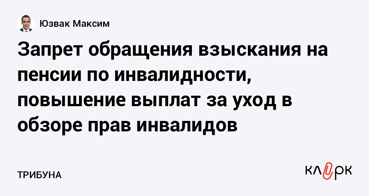 Запрет обращения взыскания на пенсии по инвалидности, повышение выплат за уход в обзоре прав инвалидов