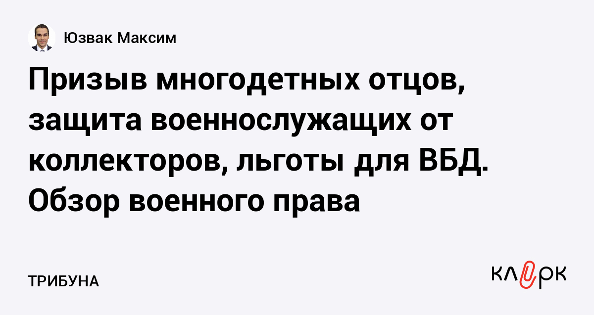 Призыв многодетных отцов, защита военнослужащих от коллекторов, льготы для ВБД. Обзор военного права