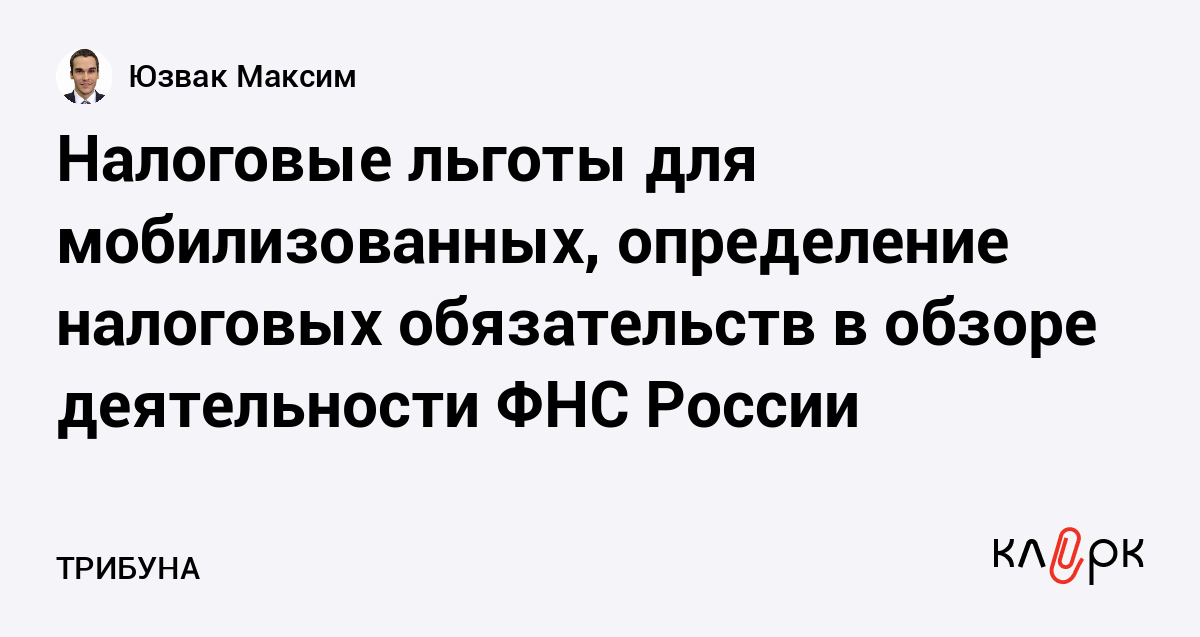 Налоговые льготы для мобилизованных, определение налоговых обязательств в обзоре деятельности ФНС России