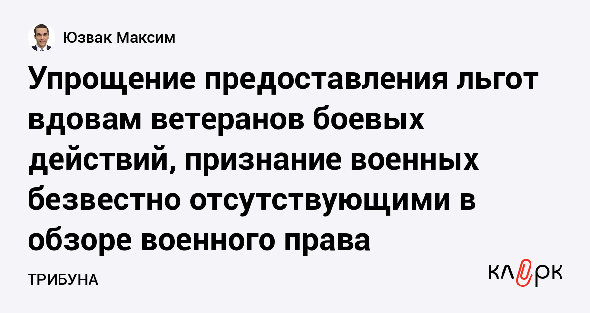 Упрощение предоставления льгот вдовам ветеранов боевых действий, признание военных безвестно отсутствующими в обзоре военного права