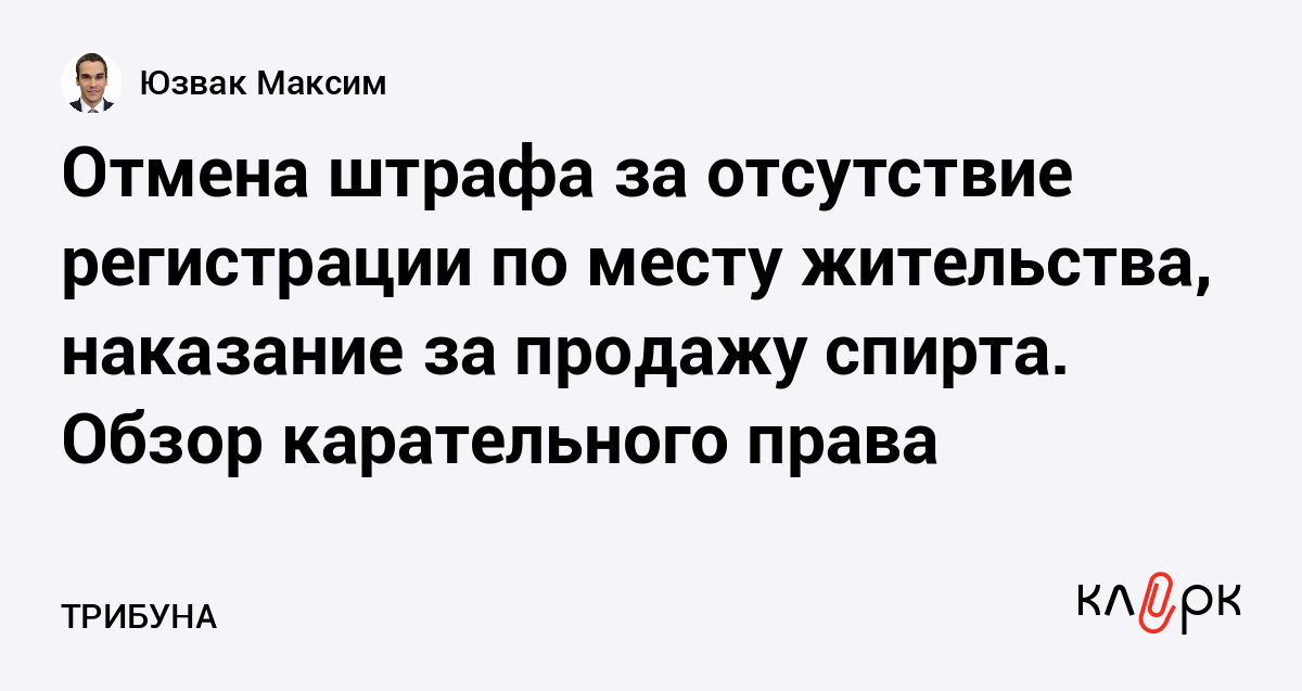 Отмена штрафа за отсутствие регистрации по месту жительства, наказание за продажу спирта. Обзор карательного права