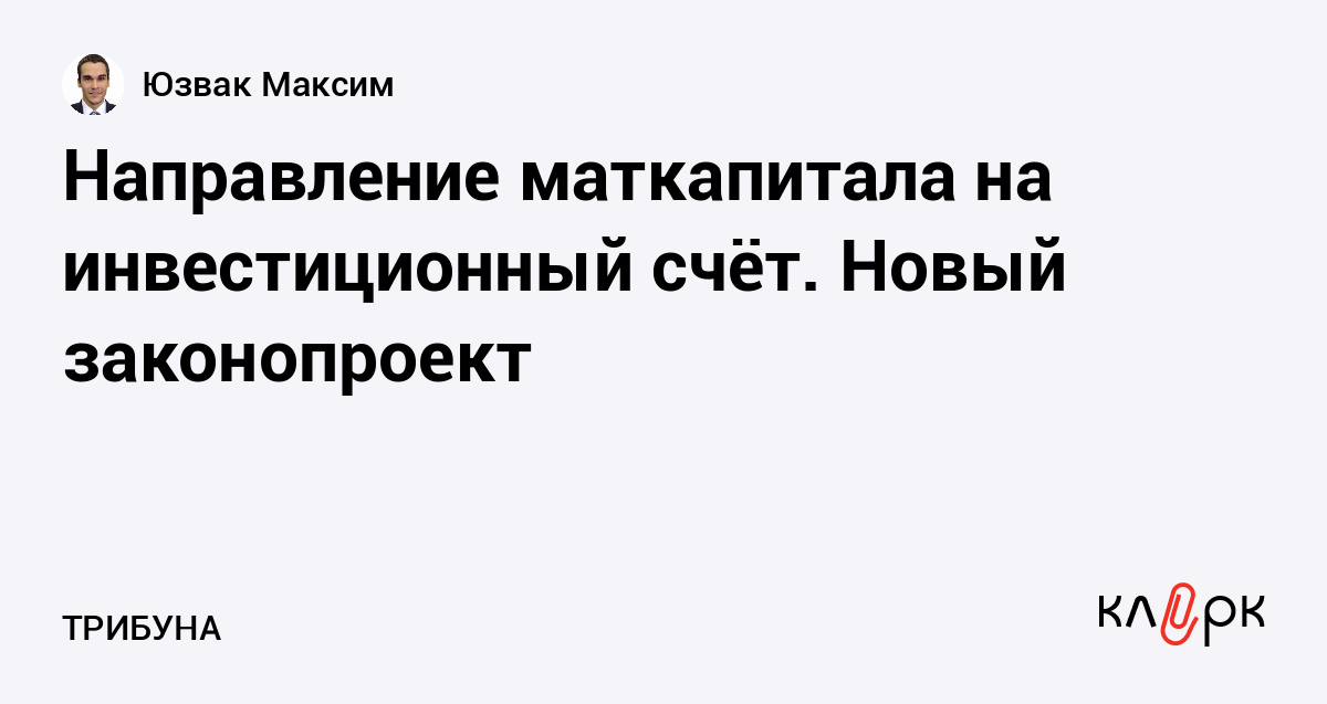 Направление маткапитала на инвестиционный счёт. Новый законопроект