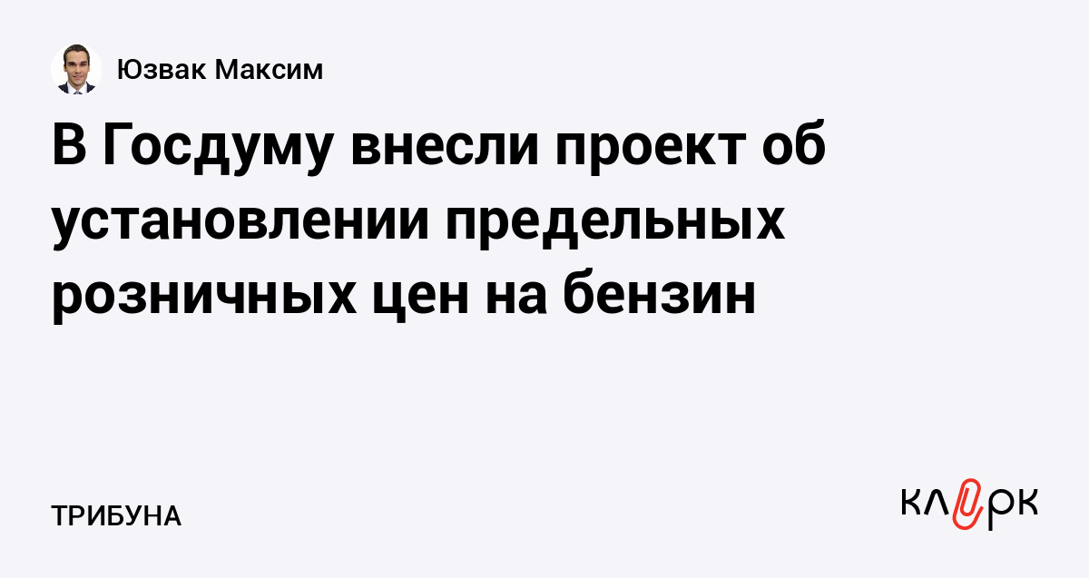Предлагается устанавливать максимальные цены на топливо (Законопроект № 438075-8).
