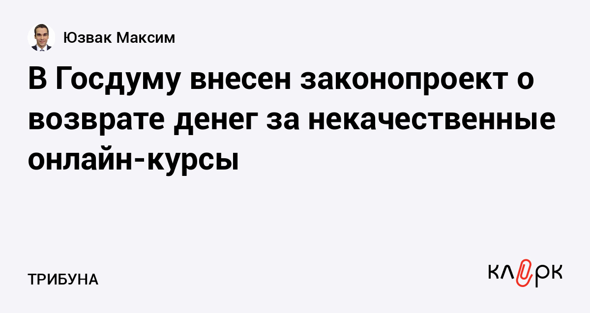 Предлагается установить право на возврат денег за некачественное онлайн обучение (Законопроект № 447789-8).