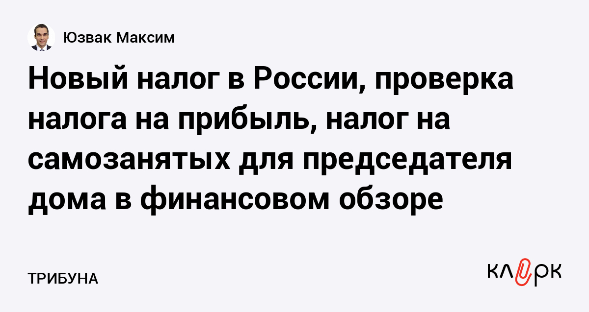 Новый налог в России, проверка налога на прибыль, налог на самозанятых для председателя дома в финансовом обзоре