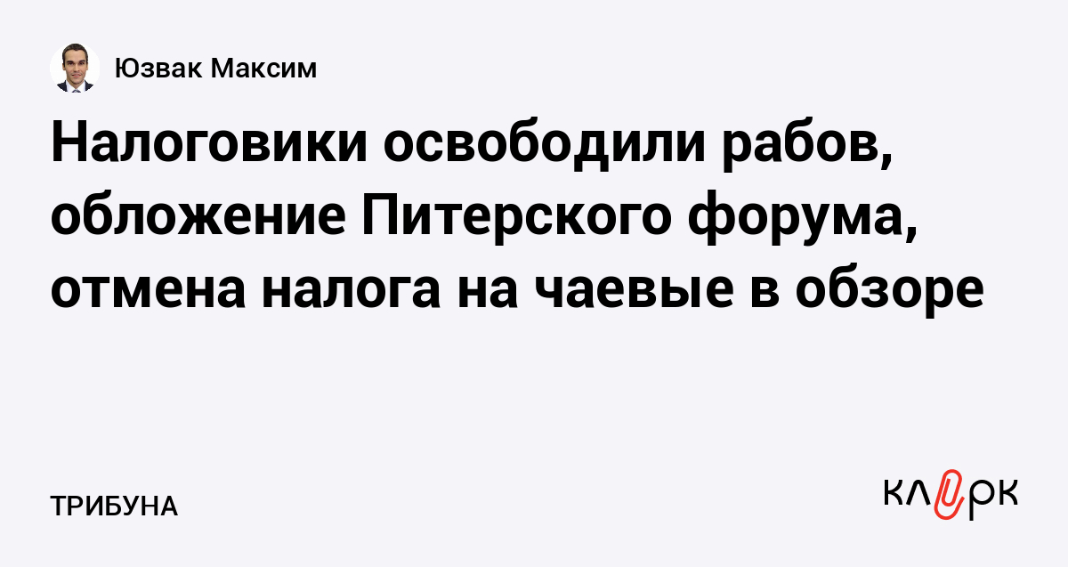 Налоговики освободили рабов, обложение Питерского форума, отмена налога на чаевые в обзоре