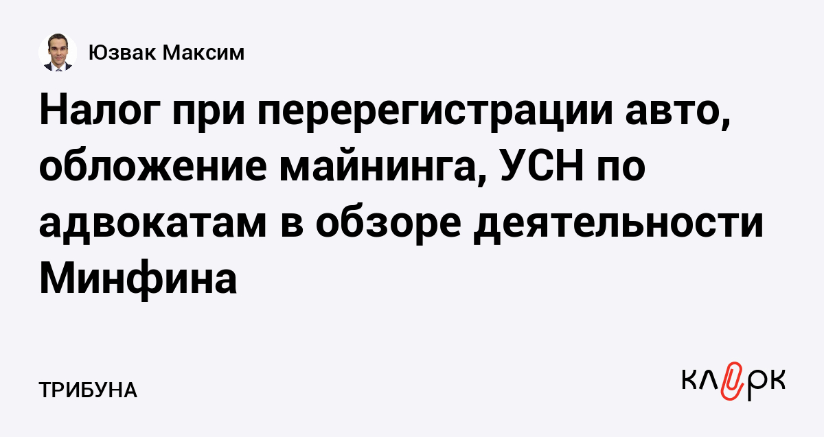Налог при перерегистрации авто, обложение майнинга, УСН по адвокатам в обзоре деятельности Минфина