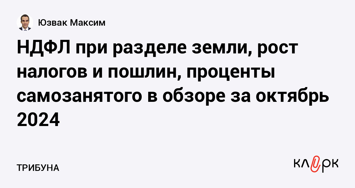 НДФЛ при разделе земли, рост налогов и пошлин, проценты самозанятого в обзоре за октябрь 2024
