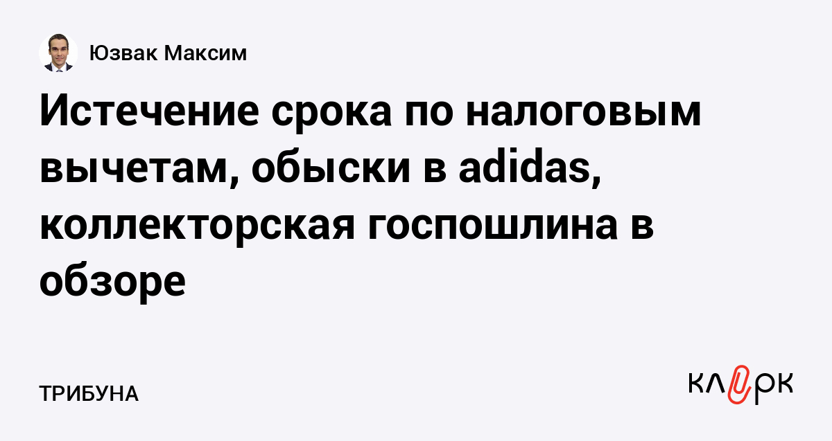 Истечение срока по налоговым вычетам, обыски в adidas, коллекторская госпошлина в обзоре