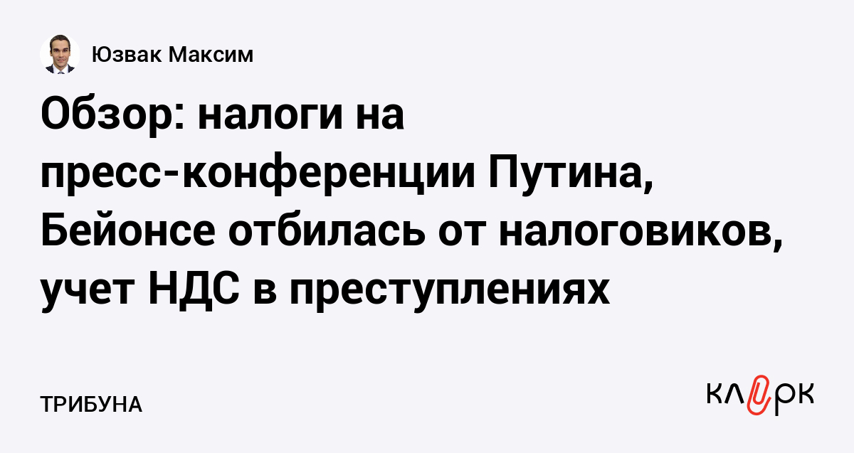 Обзор: налоги на пресс-конференции Путина, Бейонсе отбилась от налоговиков, учет НДС в преступлениях
