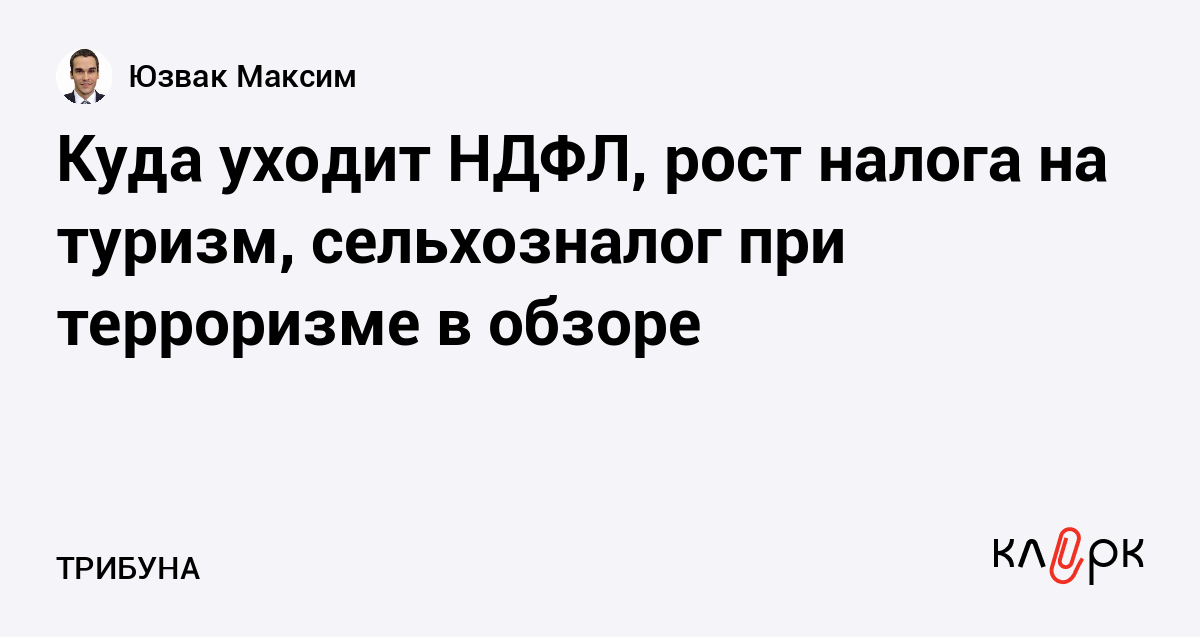 Куда уходит НДФЛ, рост налога на туризм, сельхозналог при терроризме в обзоре