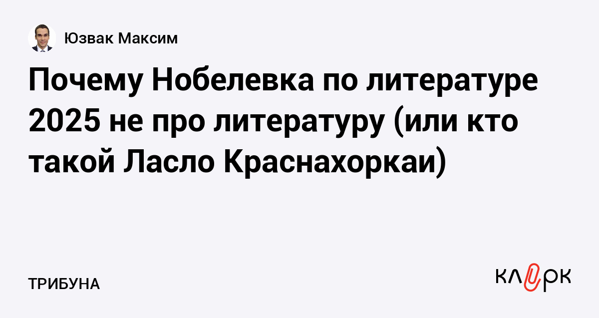 Почему Нобелевка по литературе 2025 не про литературу (или кто такой Ласло Краснахоркаи)