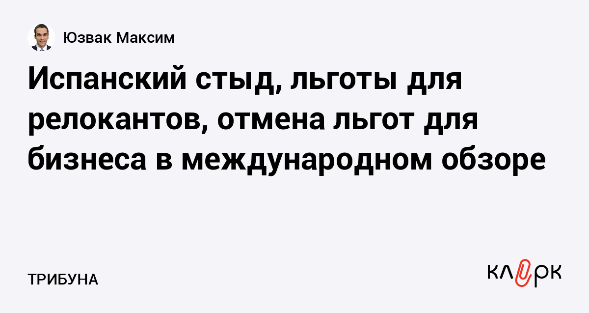 Испанский стыд, льготы для релокантов, отмена льгот для бизнеса в международном обзоре