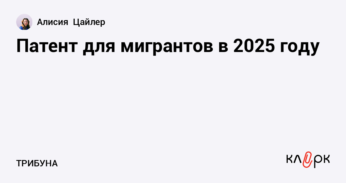 Прочла материал «Клерк.Премиум» о патентах Сколько платить за патент для мигрантов в 2025 году. Делюсь основными тезисами.